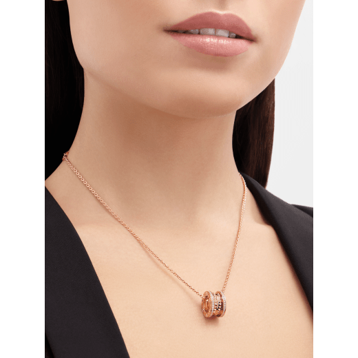 B.zero1 Rock pendant necklace in 18 kt rose gold with pavé diamonds.