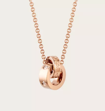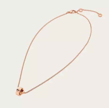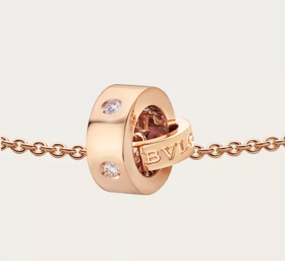 Grown from the Roman roots of the brand and created as an elegant fusion of culture and modernity, the BVLGARI BVLGARI necklace is an effervescent, contemporary statement of classiness. The trademark double logo was initially inspired by the curved inscriptions on ancient coins, whilst today it has evolved into playful and unexpected interpretations, offering a distinctive element to the design. BVLGARI BVLGARI 18 kt rose gold pendant necklace with five diamonds.