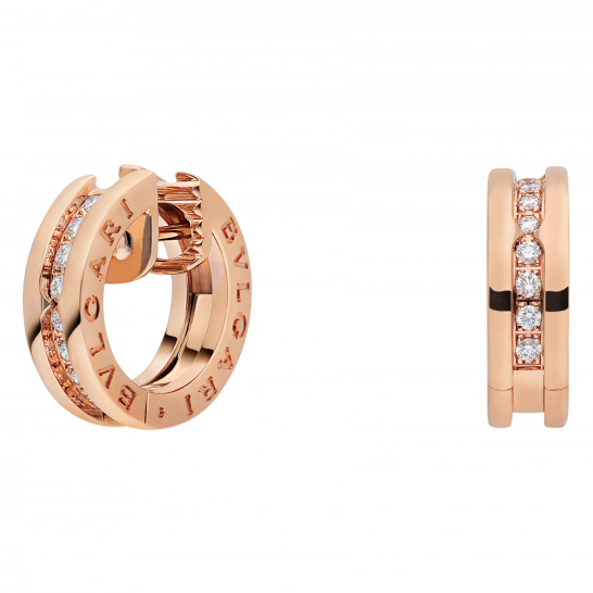 Legendary B The ZERO1 series logo adheres to its innovative spirit and has been reinterpreted through the timeless design of ZAHA HADID. Inspired by B. from the Roman Colosseum The ZERO1 Legendary masterpiece series, reinterpreted by a great female architect, combines geometric shapes with smooth lines, blending modern style with traditional elements, and can be described as a stunning collision of ancient and modern languages. B. The ZERO1 Legendary Masterpiece Collection features 18K rose gold earrings adorned with intricately set diamonds.