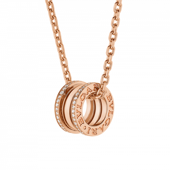 B.ZERO1 series pendant necklace, made of 18K rose gold and decorated with pavé diamonds.