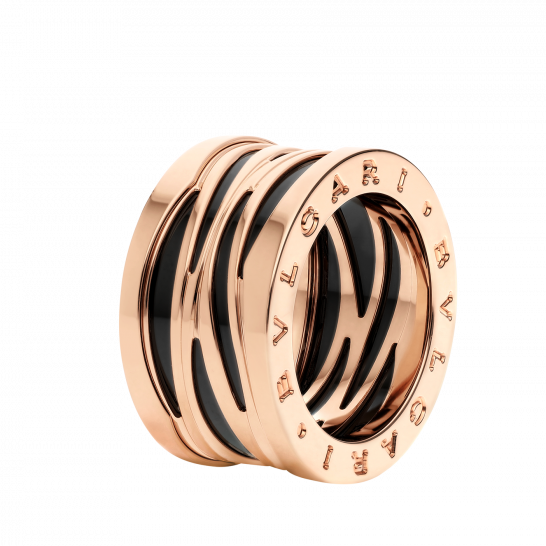 Legendary B The ZERO1 logo adheres to its innovative spirit and has been reinterpreted through ZAHA HADID's legendary design. Inspired by B. from the Roman Colosseum The ZERO1 legendary masterpiece ring, reinterpreted by a great female architect, combines geometric shapes with smooth lines, blending modern style with traditional elements, making it a wonderful collision of ancient and modern languages. The creative combination of rose gold and black ceramics complements the bold and modern Italian style design, once again showcasing B The ZERO1 series rejects the groundbreaking spirit of conventions. B. The legendary masterpiece of ZERO1 is an 18K rose gold four ring ring set with black ceramic.