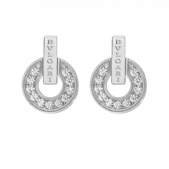 BVLGARI BVLGARI series hollow earrings, made of white 18K gold material, adorned with fully set diamonds.