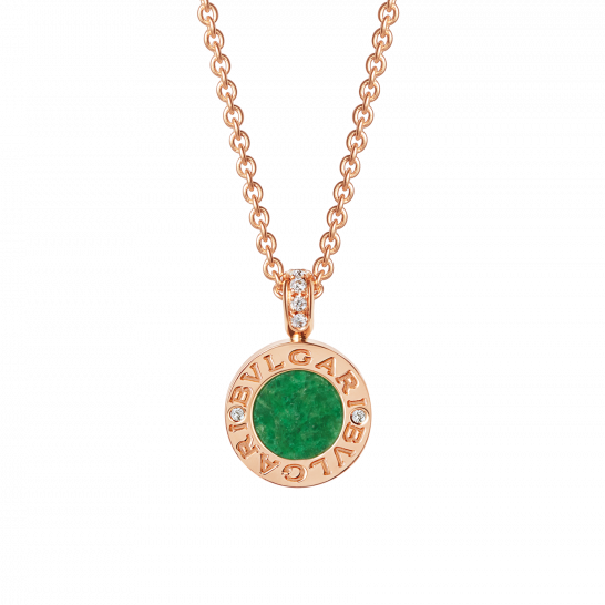 BVLGARI BVLGARI necklace in 18K rose gold, decorated with emeralds and pavé diamonds. Length 41-43 cm (16.14-16.92 inches).