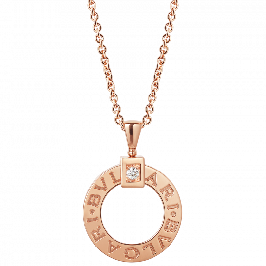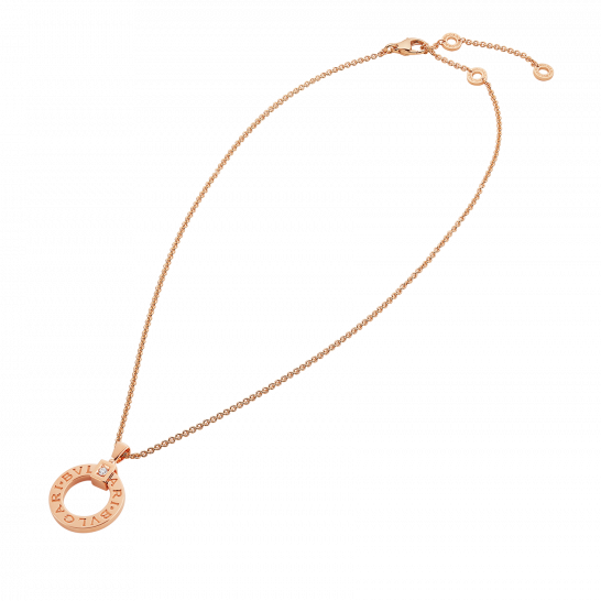 BVLGARIBVLGARI series 18K rose gold pendant, attached necklace, set with diamonds, length 38-45.5 cm.