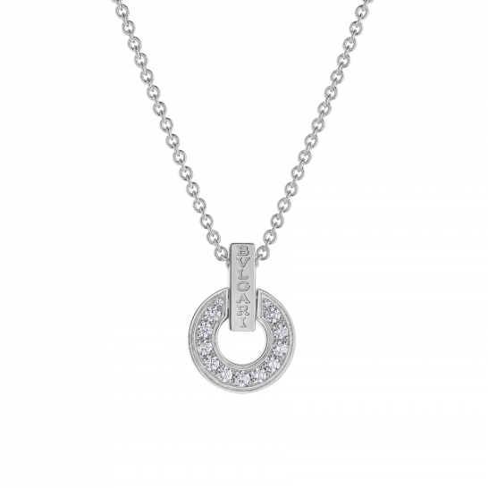 BVLGARI BVLGARI series hollow necklace, made of 18K white gold, decorated with full pavé diamonds.