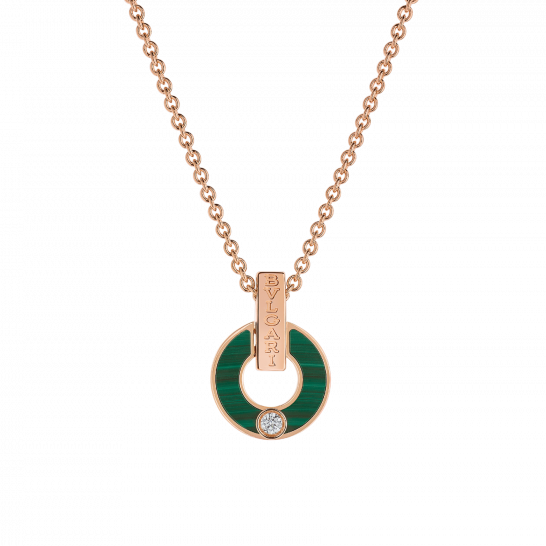 BVLGARI BVLGARI series hollow necklace, made of 18K rose gold, set with malachite and 1 brilliant-cut diamond.