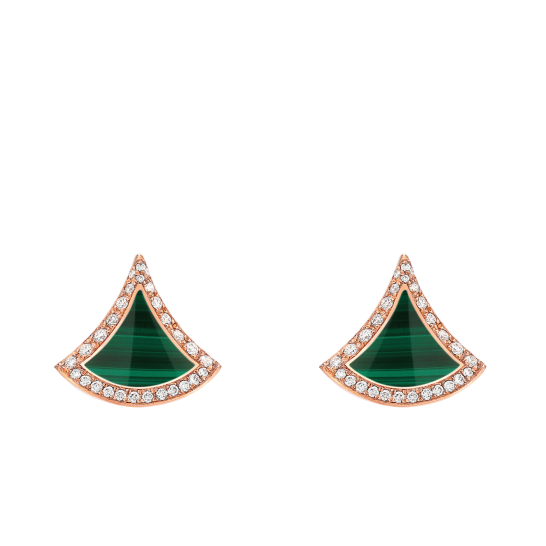 The DIVAS' DREAM series 18K rose gold earrings pay tribute to charming women with a unique Roman spirit. Drawing inspiration from the elegant temperament of women, this exquisite fan-shaped pattern is crafted by pairing it with peacock stones with diamond edges. The unique iconic elements evoke the mosaic pattern of the Roman Caracalla Bathhouse, paying tribute to Italian aesthetics.