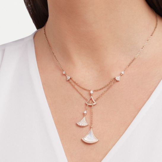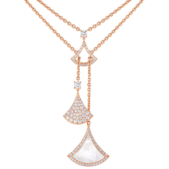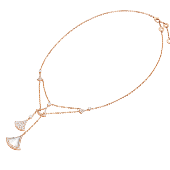 DIVAS' DREAM series 18K rose gold necklace, inlaid with mother-of-pearl and pavé diamonds.
