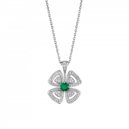 The FIOREVER series blooms brilliantly in the 'Eternal City' Rome, drawing design inspiration from the charming four-petal flower cherished by the Romans. This flower is a symbol of happiness and joy. This pendant necklace demonstrates BVLGARI’s keen eye for delicate, rare and dynamic gemstones, celebrating classic floral designs with precious colors. The pieces are easy to wear and interpret the magnificence of precious gemstones with a casual sophistication and Italian flair.
