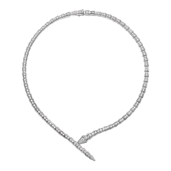 The SERPENTI VIPER series of white 18K gold necklaces interprets the endless transformations and changes of BULGARI's classic works in an ultra-modern way. The charming design shows a sensual style. Each scale is decorated with pavé diamonds, elegantly blending geometric style, graceful shape and dazzling light, exuding irresistible charm.