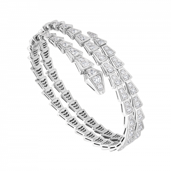 SERPENTI VIPER series white 18K gold double loop bracelet adorned with diamond inlay.