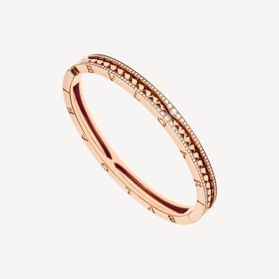 Drawing Its Inspiration From The World’S Most Renowned Amphitheater, The Colosseum, The B.Zero1 Rock Bangle Bracelet Is A Groundbreaking Statement Of Bulgari’S Creative Vision Infused With Audacity. The Powerful Lines Of The Collection’S Famed Spiral Are Reimagined With Gold Studs And Precious Pavé Diamonds On The Edges, Highlighting The Unapologetic Spirit Of This Trailblazing Design Icon.