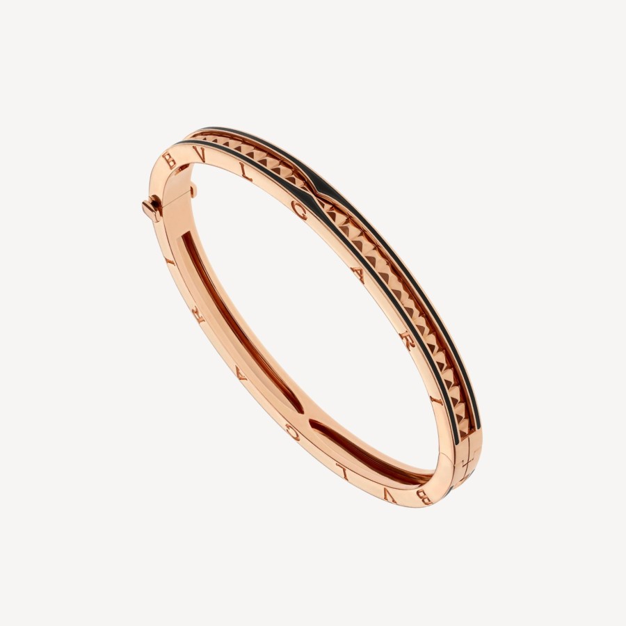 B.Zero1 Rock Bracelet In 18 Kt Rose Gold With Black Ceramic.