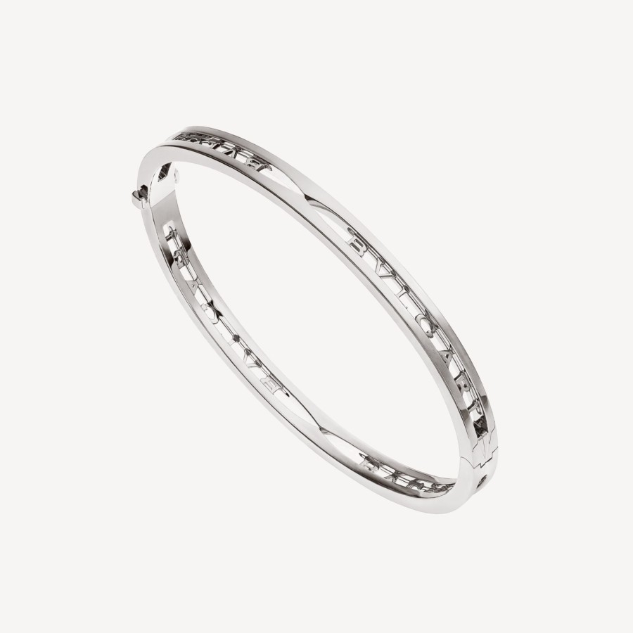 Drawing Its Inspiration From The Most Renowned Amphitheatre Of The World, The Colosseum, B.Zero1 Is A Groundbreaking Statement Of Bvlgari’S Creative Vision And A True Icon Of Italian Design. Challenging The Very Essence Of Jewellery Aesthetics, Its Distinctive Spiral Is A Metaphor For The Harmony Of Past, Present And Future – Reflected In The Magnificence Of The Eternal City – And The Emblem Of The Pioneering Spirit Of The Collection. Here The Spiral Is Reimagined In An Unforeseen Way, Featuring The Bold Bvlgari Logo. B.Zero1 18 Kt White Gold Bangle Bracelet.