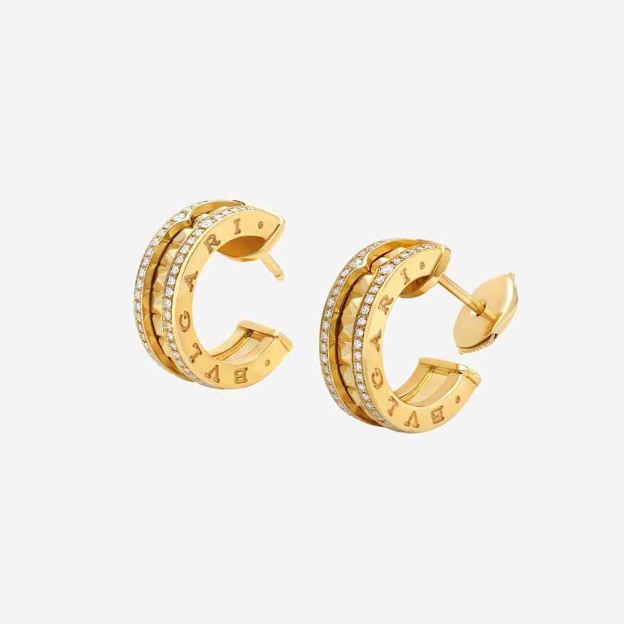 Drawing Its Inspiration From The World’S Most Renowned Amphitheater, The Colosseum, B.Zero1 Rock Is A Groundbreaking Statement Of Bvlgari’S Creative Vision Infused With A Touch Of Irreverence. Challenging The Very Essence Of Jewelry Aesthetics, Its Distinctive Spiral Is Reimagined With Gold Studs, Highlighting The Unapologetic And Visionary Spirit Of Bvlgari’S Icon Of Design. B.Zero1 Rock 18 Kt Yellow Gold Earrings With Pavé Diamonds.