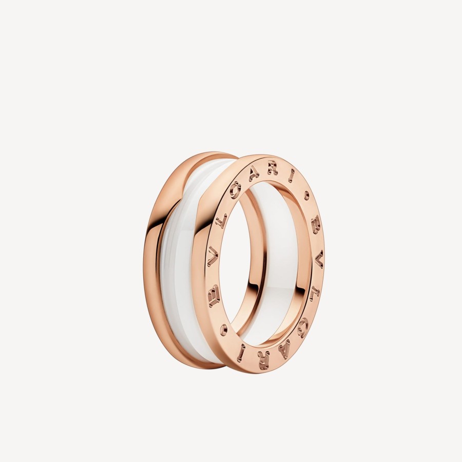 B.Zero1 Two-Band Ring With Two 18 Kt Rose Gold Loops And A White Ceramic Spiral.