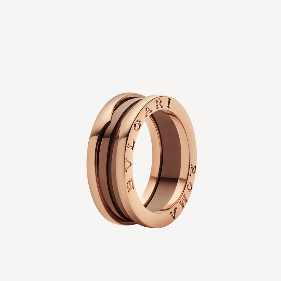 Drawing Its Inspiration From The Most Renowned Amphitheater Of The World, The Colosseum, The B.Zero1 Ring Is A True Statement Of Bulgari’S Creative Vision, Challenging The Very Essence Of Jewellery Design. The Purity Of Its Distinctive Spiral, Is A Metaphor For The Harmony Of Past, Present And Future – Reflected In The Magnificence Of The Eternal City – And The Emblem Of The Pioneering Spirit Of The Collection.B.Zero1 Two-Band Ring In 18 Kt Rose Gold And Cermet.