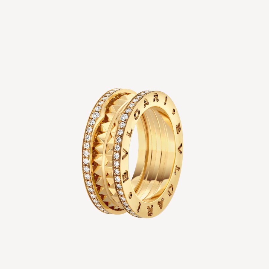 Drawing Its Inspiration From The World’S Most Renowned Amphitheater, The Colosseum, B.Zero1 Rock Is A Groundbreaking Statement Of Bvlgari’S Creative Vision Infused With A Touch Of Irreverence. Challenging The Very Essence Of Jewelry Aesthetics, Its Distinctive Spiral Is Reimagined With Gold Studs, Highlighting The Unapologetic And Visionary Spirit Of Bvlgari’S Icon Of Design. B.Zero1 Rock Two-Band Ring In 18 Kt Yellow Gold With Pavé Diamonds.
