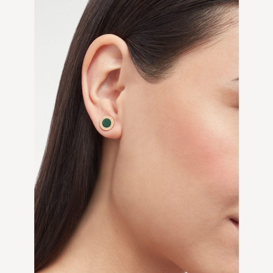 Grown From The Roman Roots Of The Brand Into An Elegant Fusion Of Culture And Modernity, The Bvlgari Bvlgari Freely Combinable Earring Is An Effervescent, Contemporary Statement Of Classiness. The Trademark Double Logo Was Initially Inspired By The Curved Inscriptions On Ancient Coins, Whilst Today It Has Evolved Into Playful Interpretations. In Tune With The Collection’S Dynamic Spirit, The Single Earring Can Be Paired With Different Colour And Gemstone Options, For A Truly Unique Style. Bvlgari Bvlgari 18 Kt Rose Gold Single Stud Earring, Set With Malachite