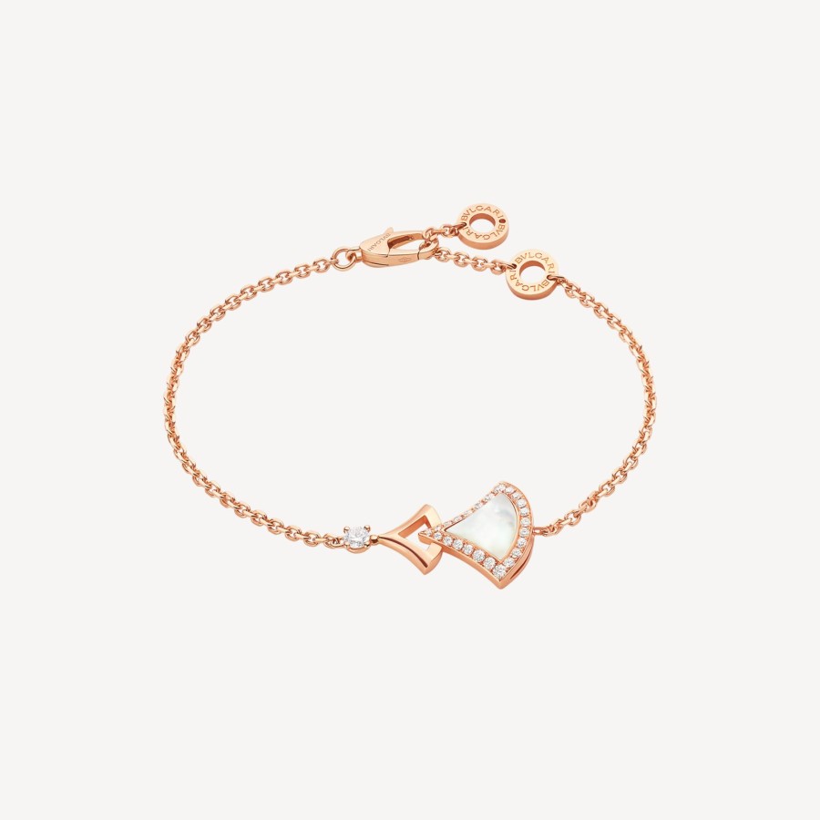 Divas’ Dream 18 Kt Rose Gold Bracelet With A Mother-Of-Pearl Insert And Pavé Diamonds.