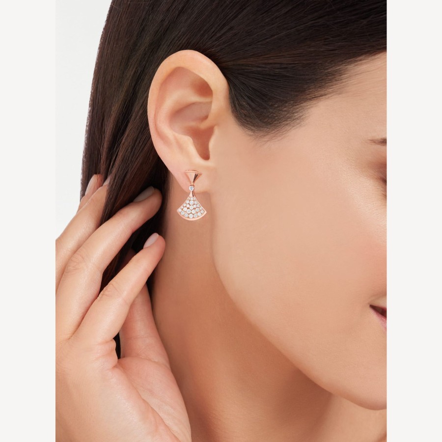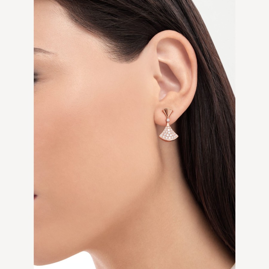 Inspired By Feminine Elegance And By The Enchanting Allure Of The Eternal City, The Divas’ Dream Earrings Pay Homage To The Most Glamorous Divas With An Unmistakable Roman Spirit. Quintessentially Feminine And Refined, The Earrings Are Sculpted Capturing The Magnificence Of The Caracalla Baths Marble And The Sensual Curves Of Its Fan-Shaped Mosaics, Reflecting The Very Essence Of Italian Beauty. Divas’ Dream Earrings In 18 Kt Rose Gold With Pavé Diamonds.