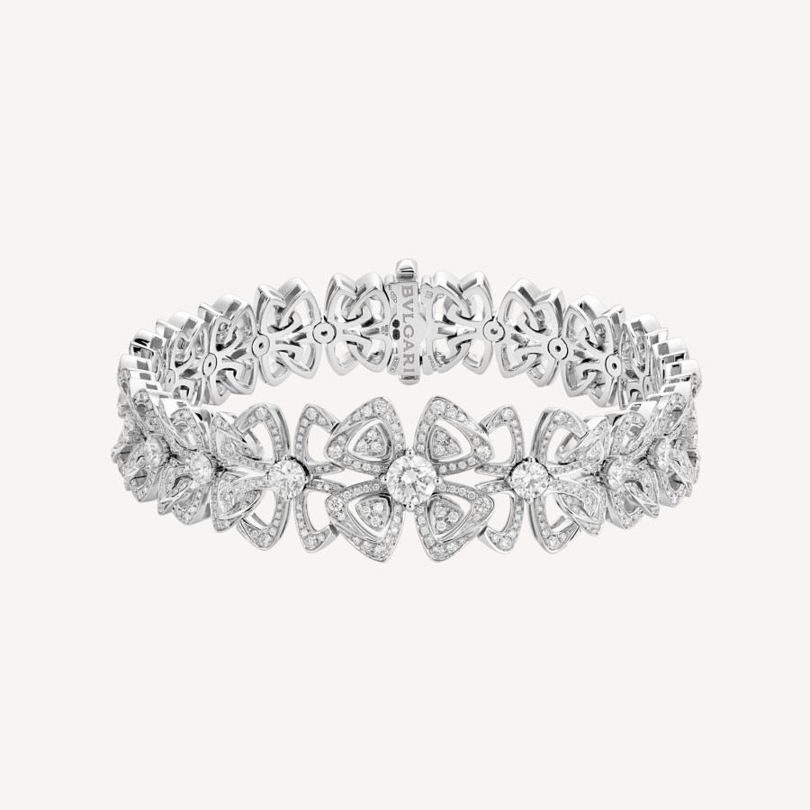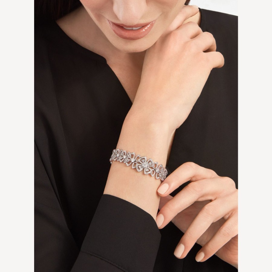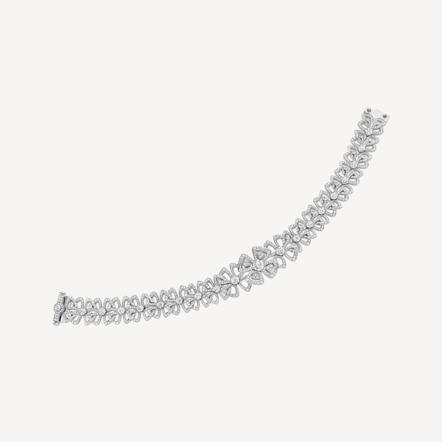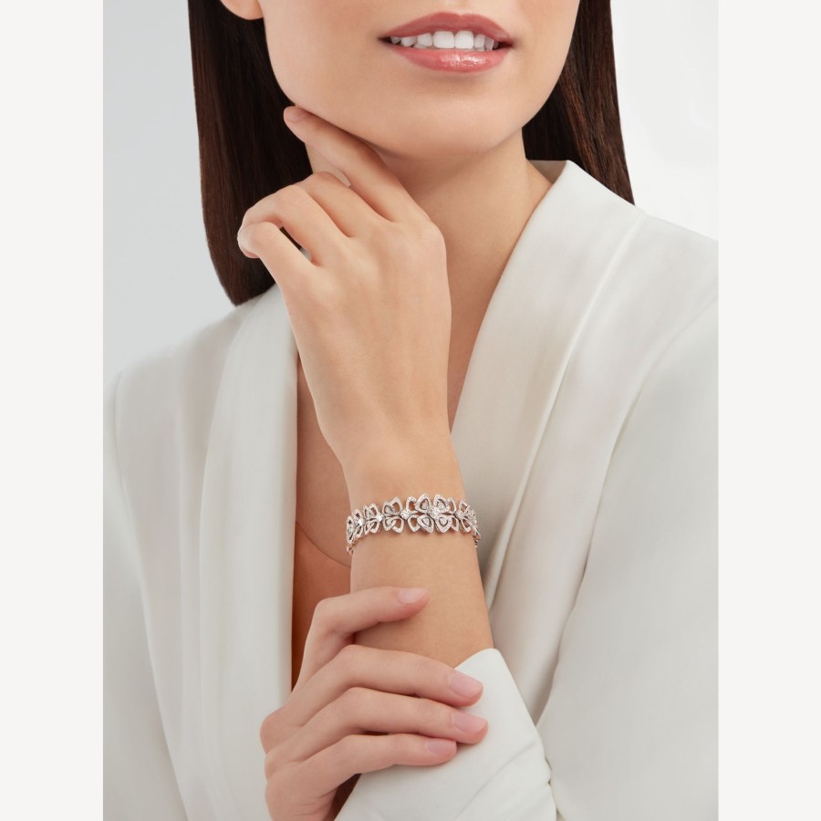 Blooming Amongst The Marvels Of The Eternal City, Fiorever Draws Inspiration From The Alluring Four-Petal Flower Cherished By The Romans As A Symbol Of Happiness And Joy. In A Blend Of Two Meaningful Words, Fiore, Italian For Flower, And Forever, Fiorever Celebrates The Roman Love For Life With A Free-Spirited And Passionate Design. Meant To Sparkle With An Eternal Glow, The Precious Floral Icon Is Crafted With A Corolla Of The Highest Quality Diamonds. Fiorever Bracelet In 18 Kt White Gold With 20 Round Brilliant-Cut Diamonds And Pavé Diamonds.
