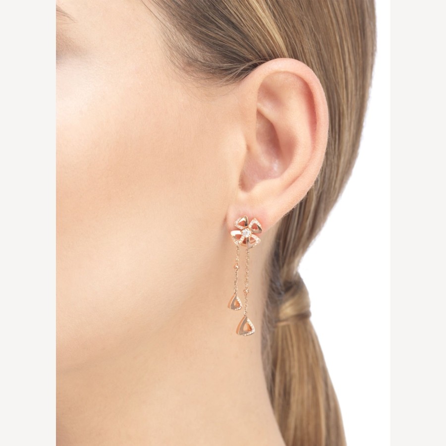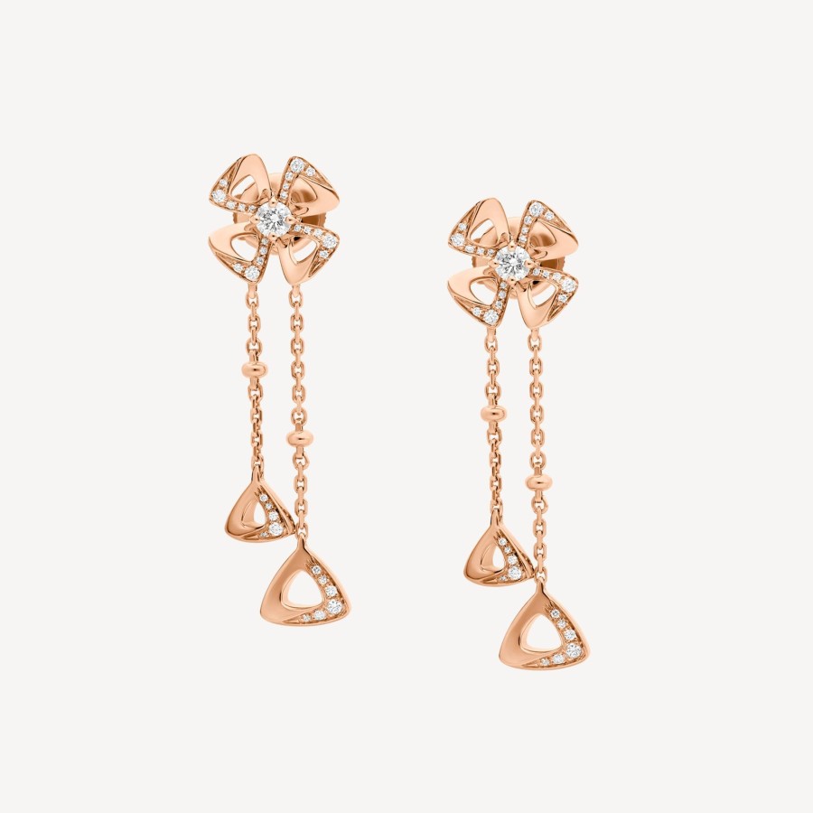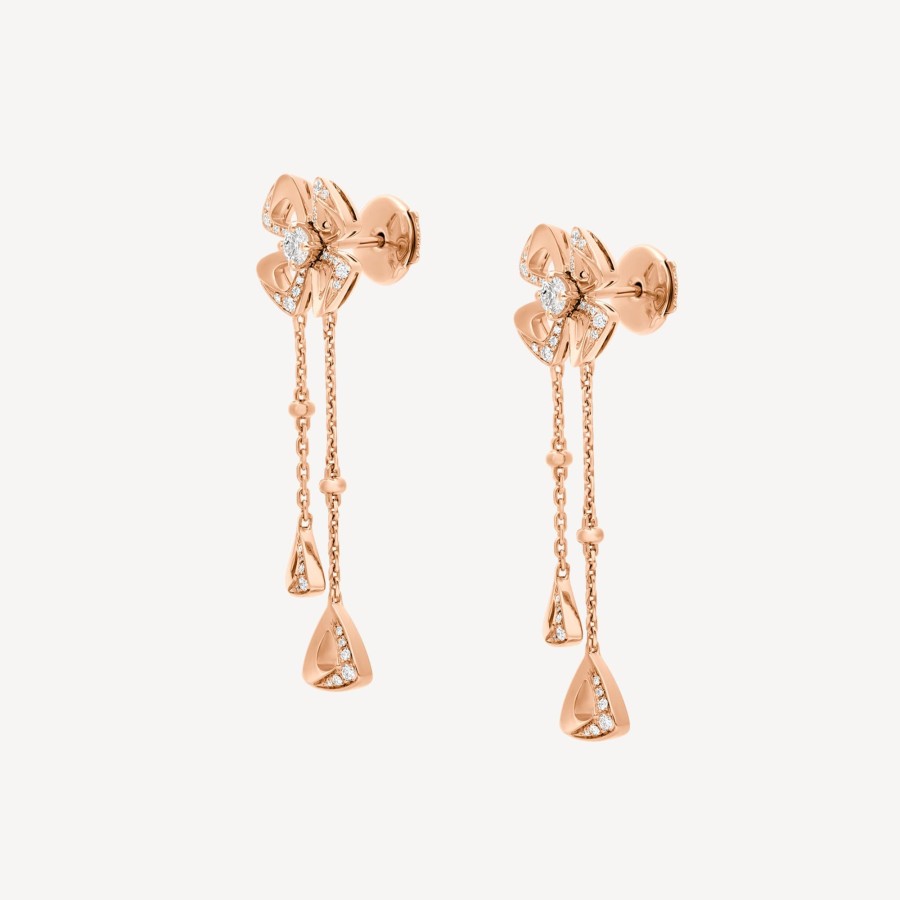Blossoming Between The Marvellous Monuments Of The Eternal City, Fiorever Draws Inspiration From The Alluring Four-Petal Flower Cherished By The Romans As A Symbol Of Happiness And Joy. A Blend Of Two Meaningful Words: Fiore – Italian For Flower, And Forever. Fiorever Celebrates The Roman Love For Life With A Free-Spirited And Passionate Design. Designed To Sparkle With An Eternal Glow, The Precious Floral Icon Is Crafted With A Corolla Of The Highest Quality Diamonds. Fiorever Pendant Earring In 18 Kt Rose Gold With Two Round Brilliant-Cut Diamonds And Pavé Diamonds.