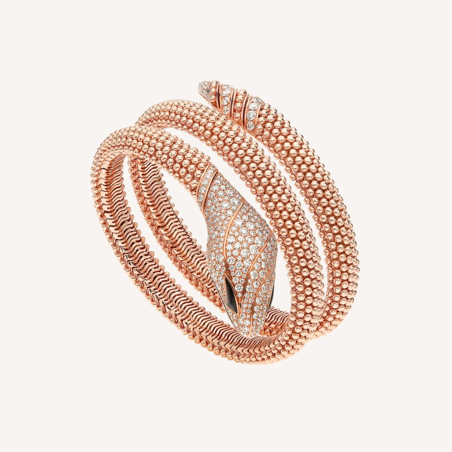 Serpenti Pallini Bracelet In 18 Kt Rose Gold With Pavé Diamonds And Black Onyx Eyes.