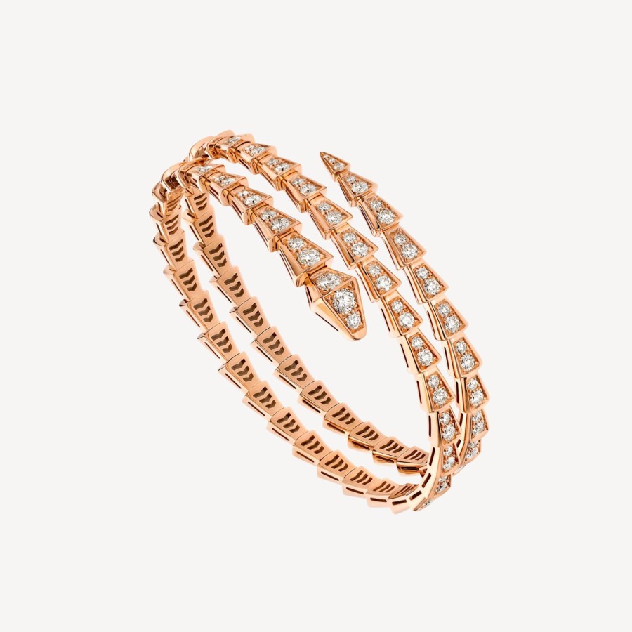 Serpenti Viper Two-Coil Bracelet In 18 Kt Rose Gold With Pavé Diamonds.