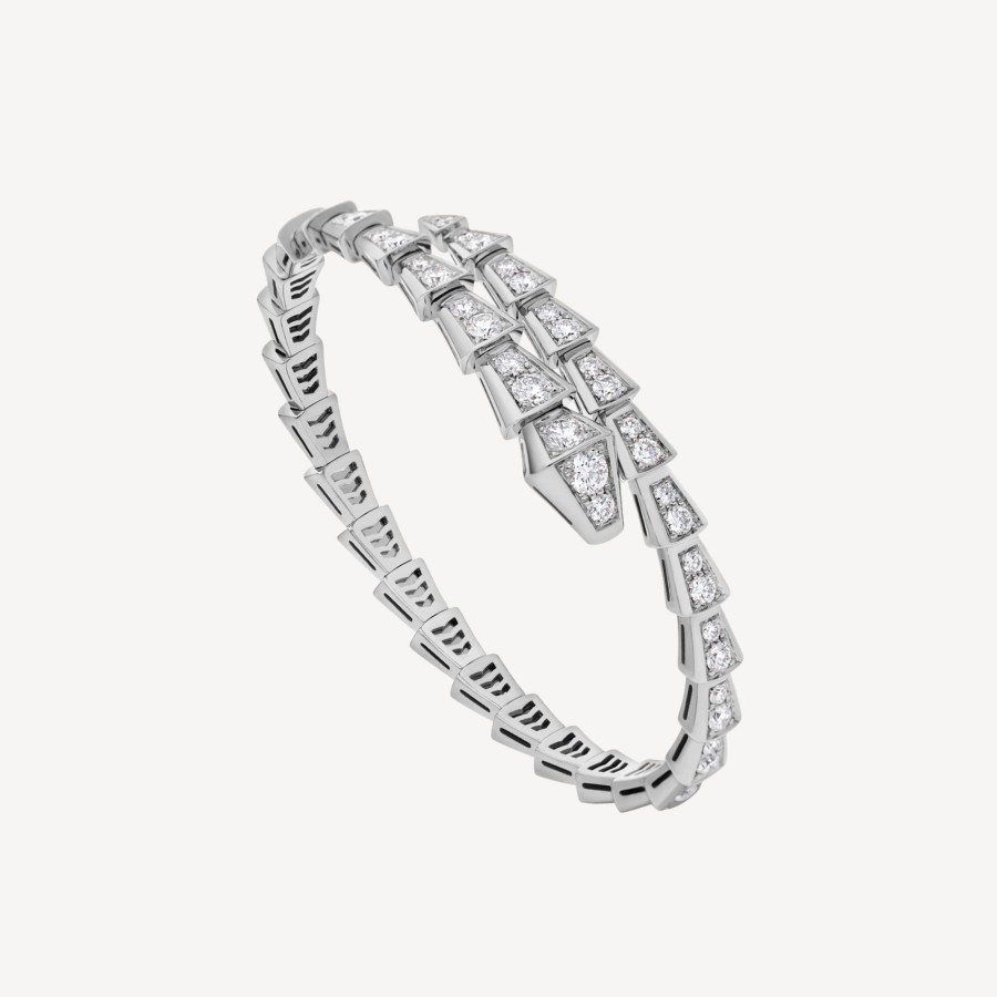 In A Tribute To Its Spirit Animal, Bulgari Captures The Power Of Seduction In This Serpenti Viper Bracelet, Camouflaging Sensuality And Temptation With A Hypnotic Design. Sophisticated And Glamorous, This Jewel Coils Around The Wrist Striking With The Precious Beauty Of The Scales And With The Distinctive Sinuosity Of The Snake. Serpenti Viper One-Coil Slim Bracelet In 18 Kt White Gold Set With Full Pavé Diamonds.