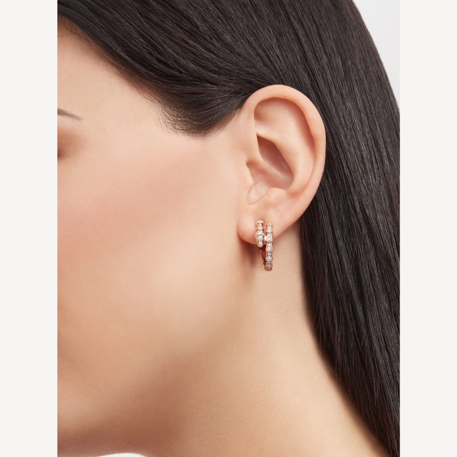 Serpenti Viper Earrings In 18 Kt Rose Gold With Pavé Diamonds.