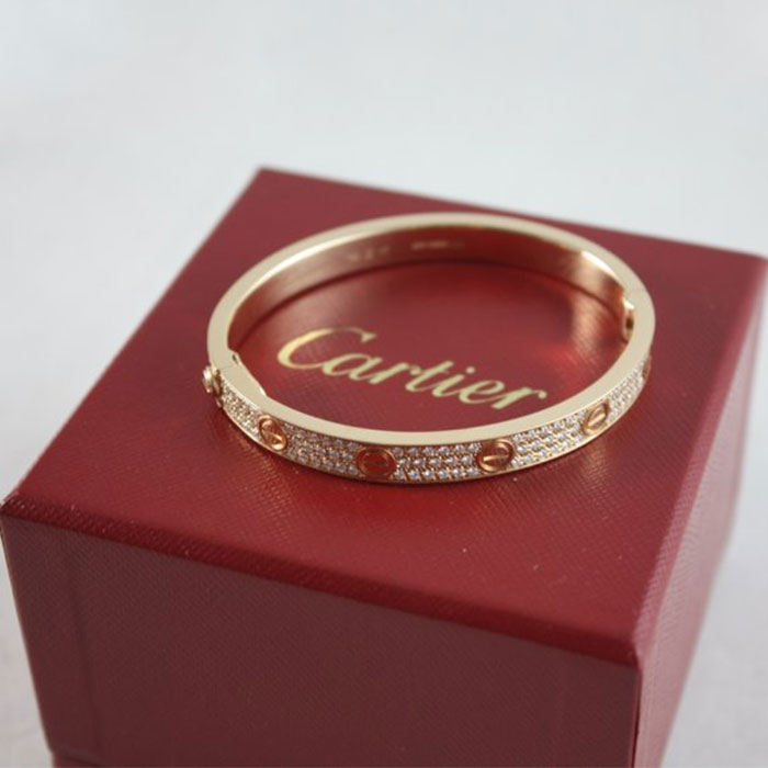 LOVE bracelet, 18K yellow gold (750/1000), set with 204 brilliant-cut diamonds totaling 2 carats. Width: 6.7 mm (for size 17).