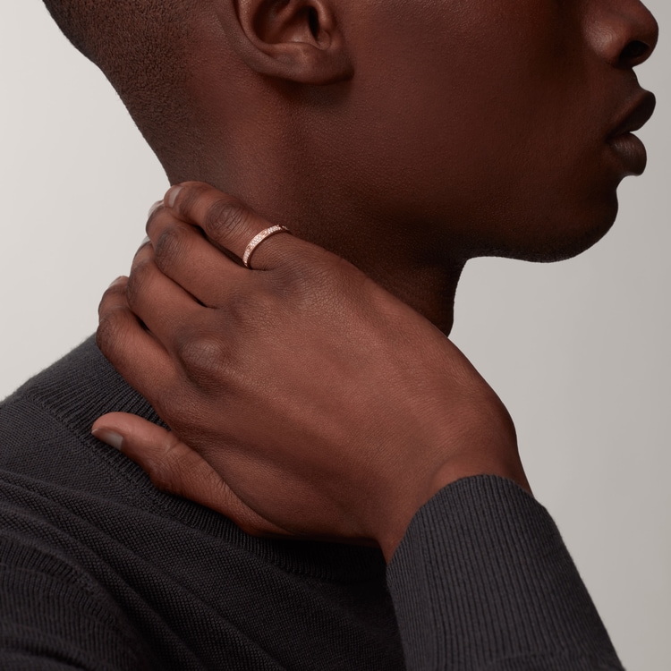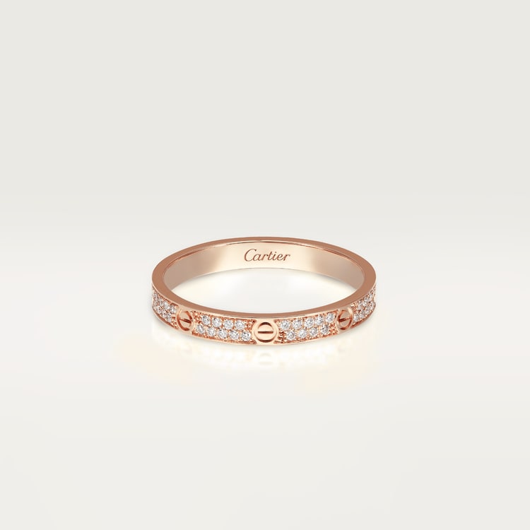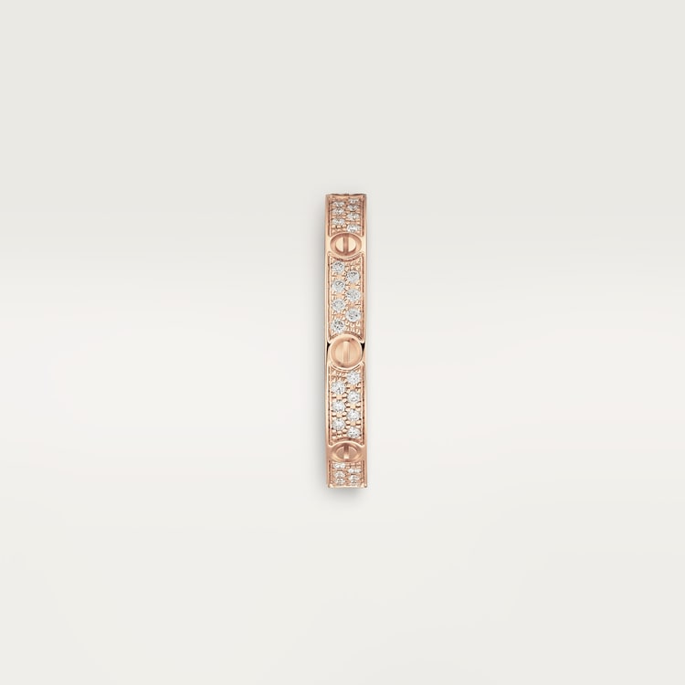 LOVE ring, small model, 18K yellow gold (750/1000), set with 72 brilliant-cut diamonds totaling 0.19 carats. Width: 2.6 mm (for size 52).