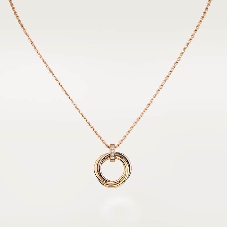 Trinity necklace, 18K white gold (750/1000), 18K rose gold (750/1000), 18K yellow gold (750/1000), set with 5 brilliant-cut diamonds totaling 0.06 carats, 18K rose gold (750/1000) chain. Width: 1.8 mm. Inner diameter: 13.4 mm (for size 17).