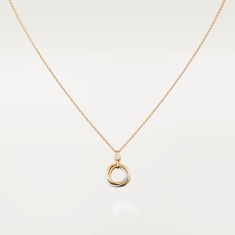 Trinity necklace, 18K white gold (750/1000), 18K rose gold (750/1000), 18K yellow gold (750/1000), set with 1 brilliant-cut diamonds totaling 0.04 carats, 18K rose gold (750/1000) chain. Inner diameter 7.3mm.