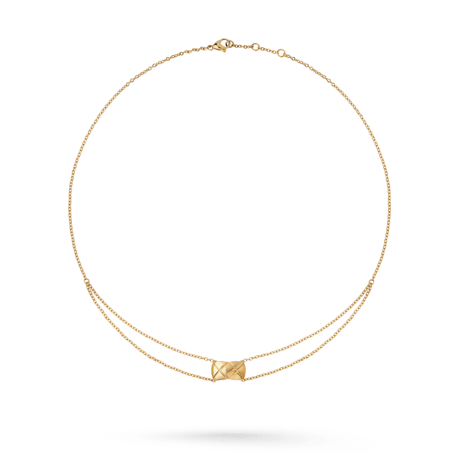 The different adjustment rings on the chain enable the necklace to be worn either in the long or short version