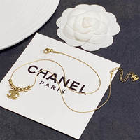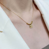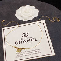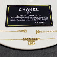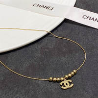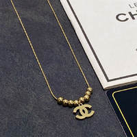 Chanel double C yellow gold bead pendant necklace