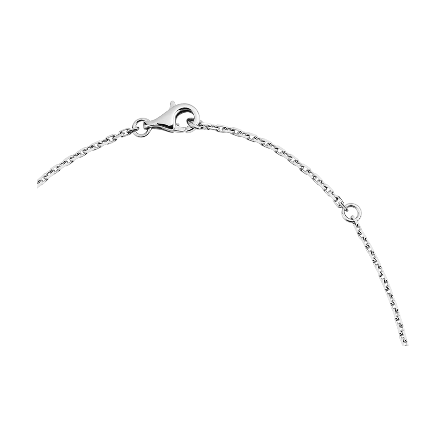 The different adjustment rings on the chain enable the necklace to be worn either in the long or short version.