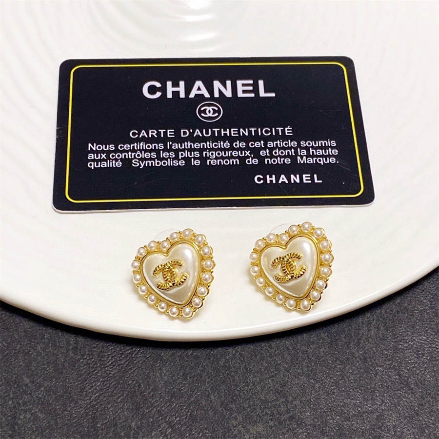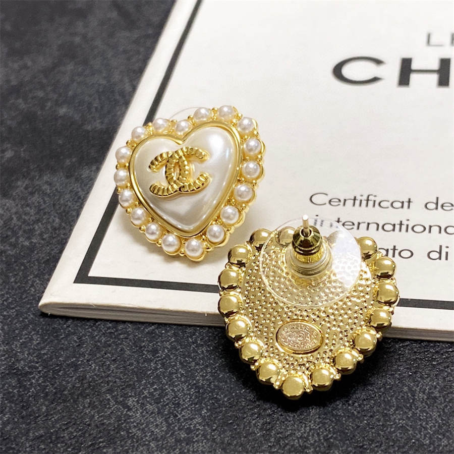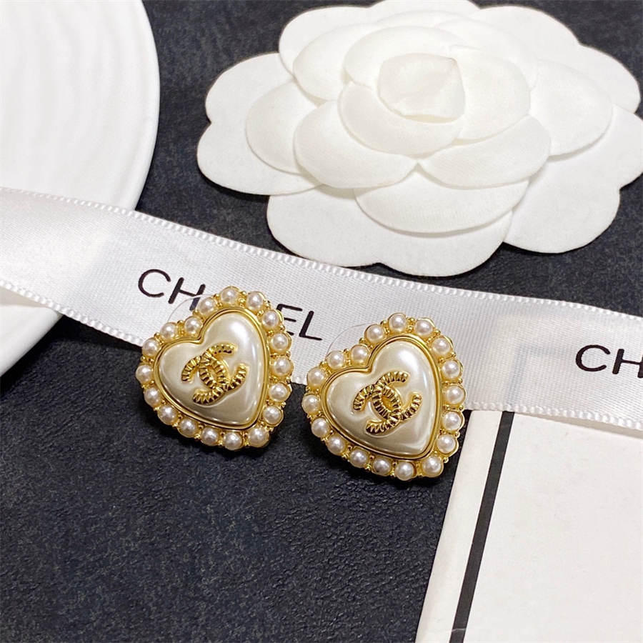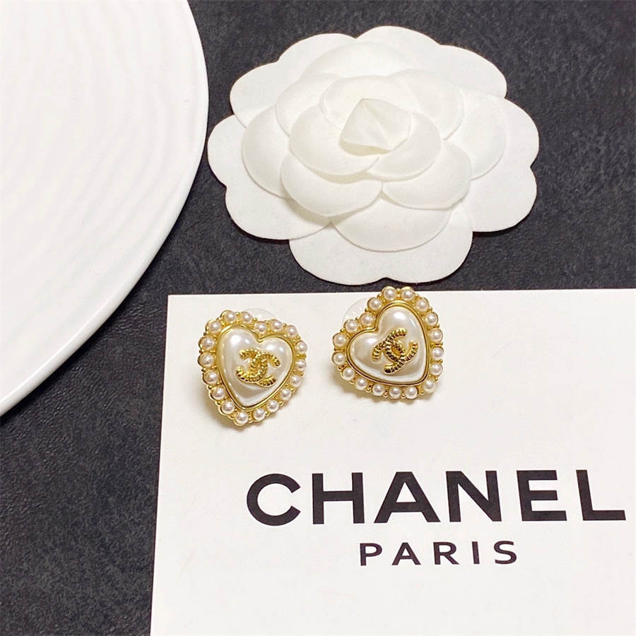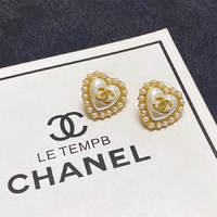 Chanel inlaid pearl love earrings