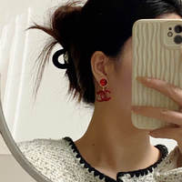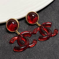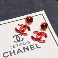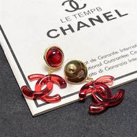 Chanel red double C letter earrings