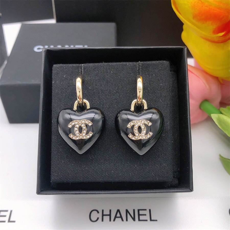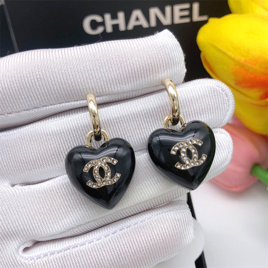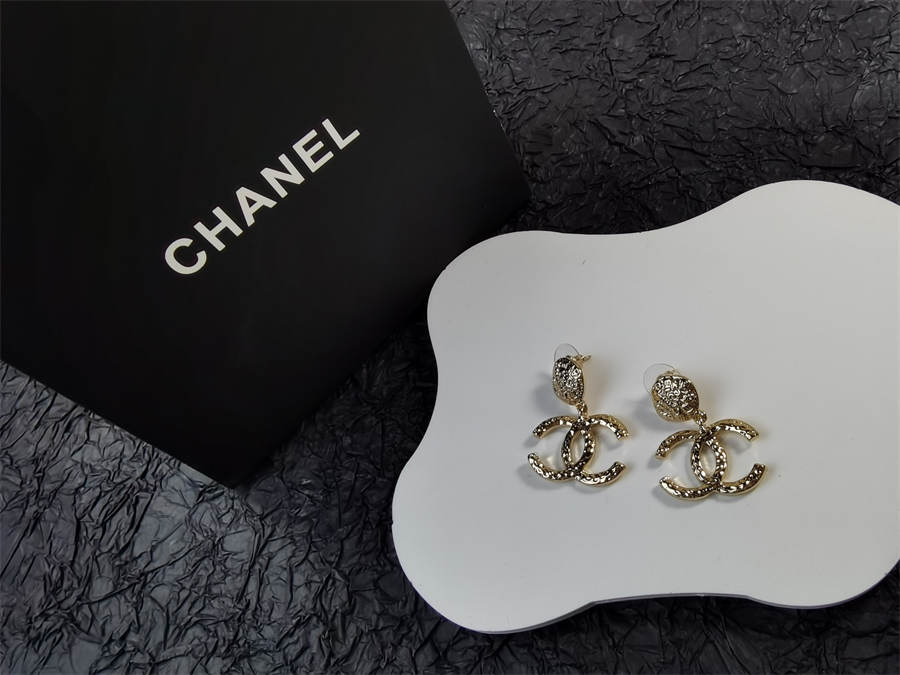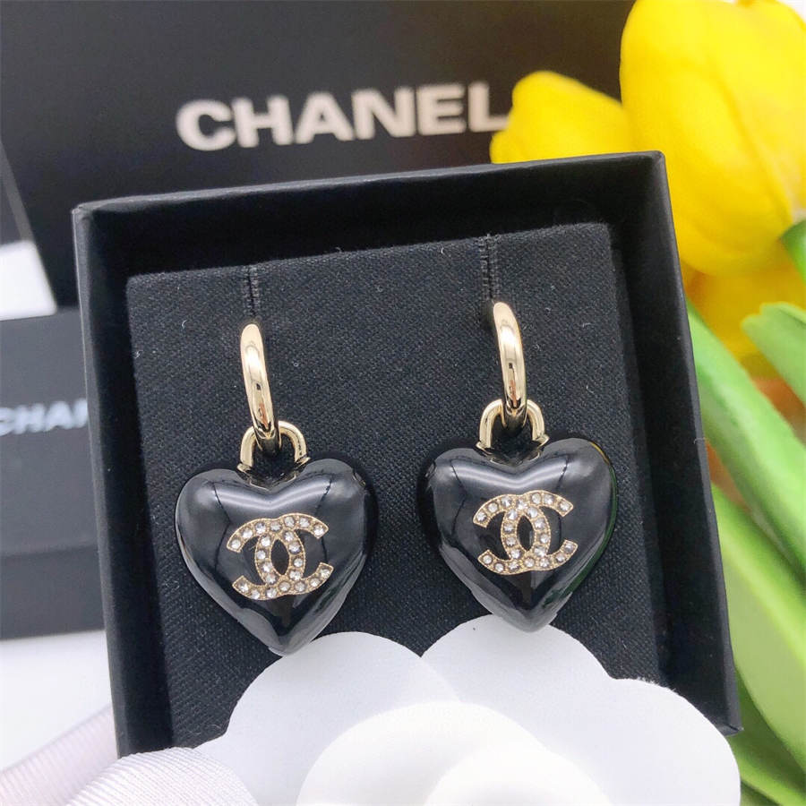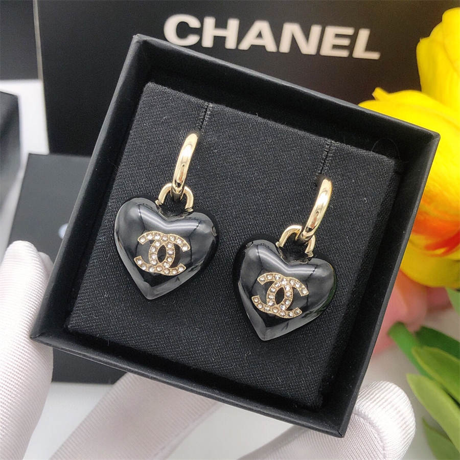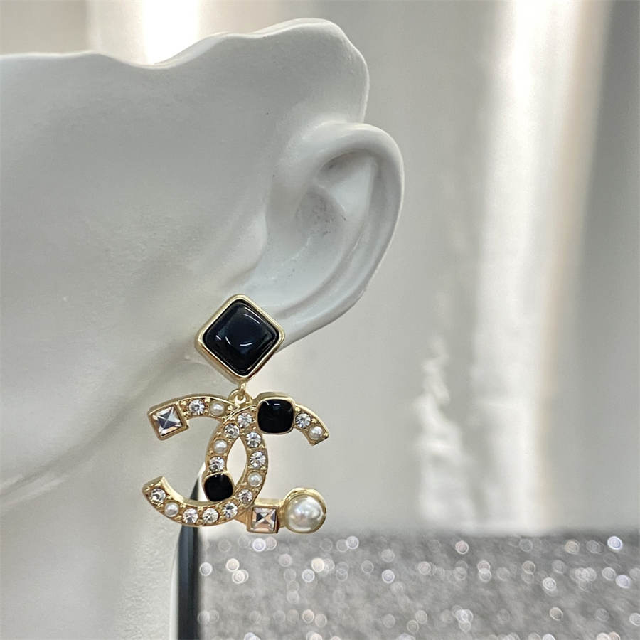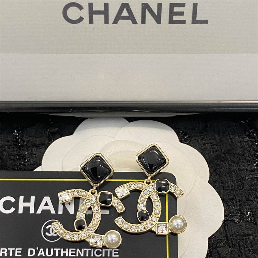 Chanel double C pearl rhinestone obsidian dangle earrings