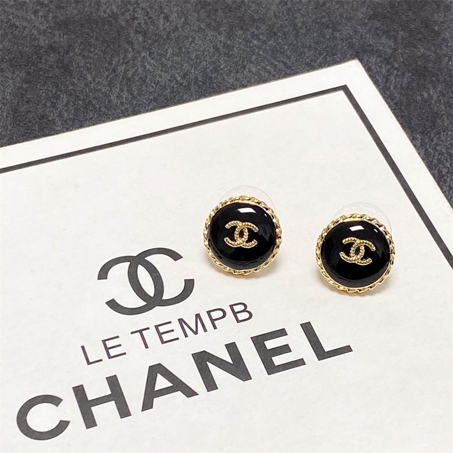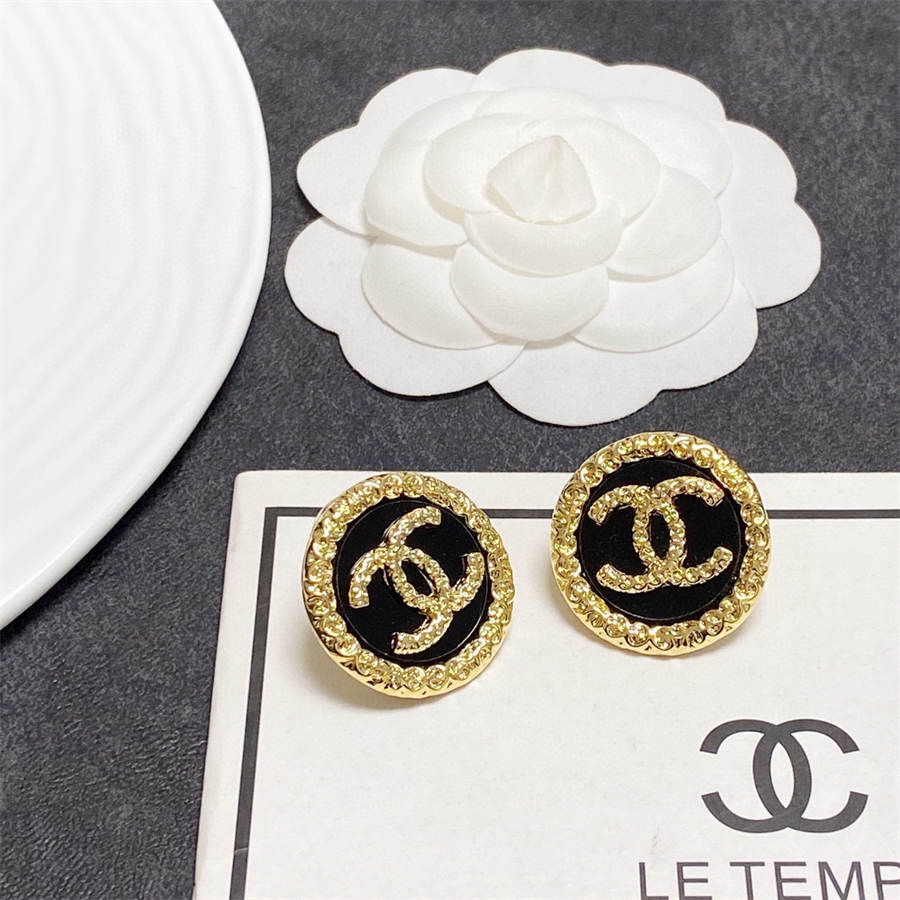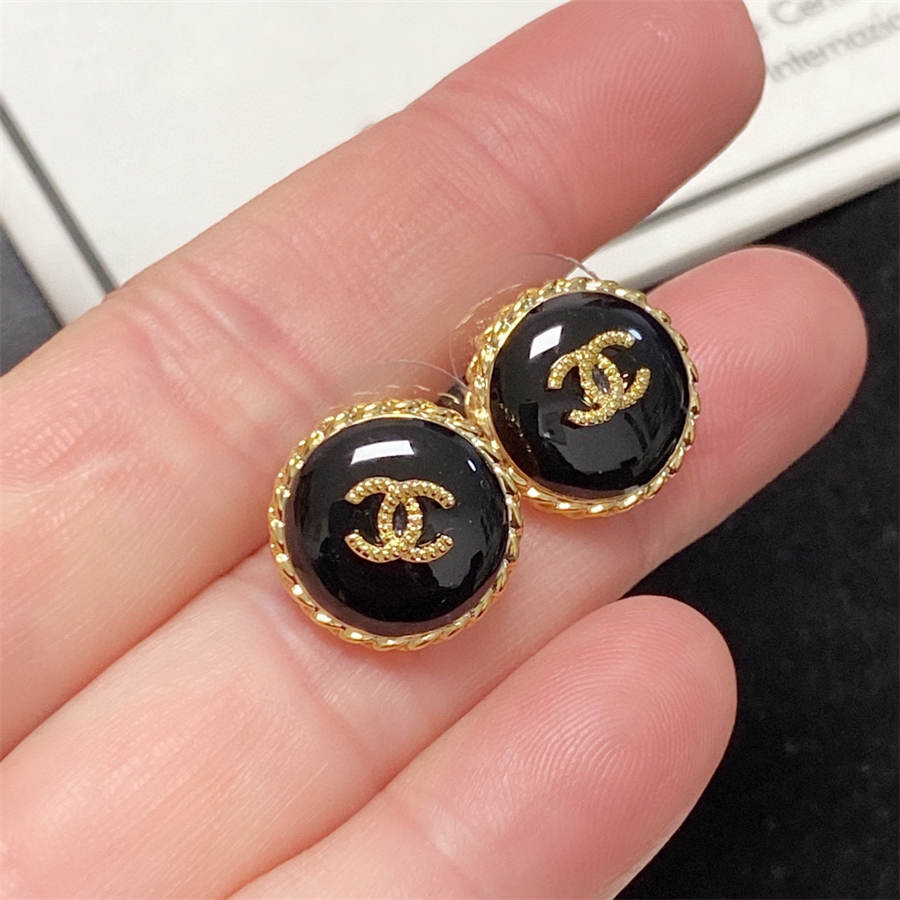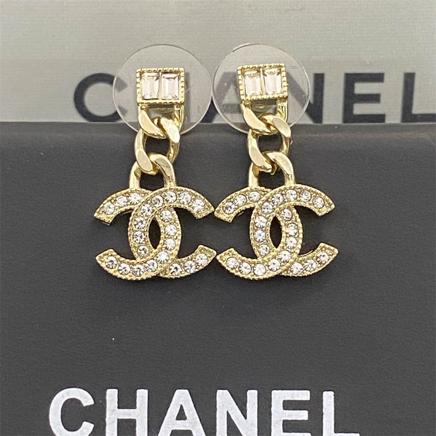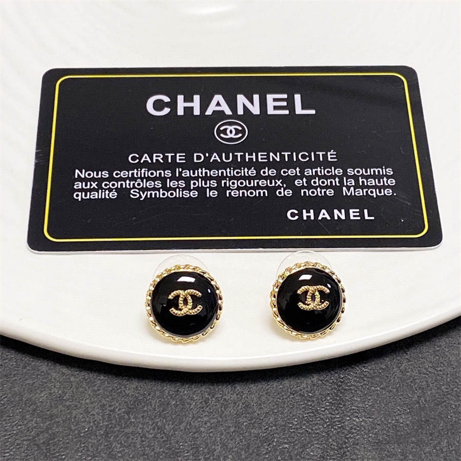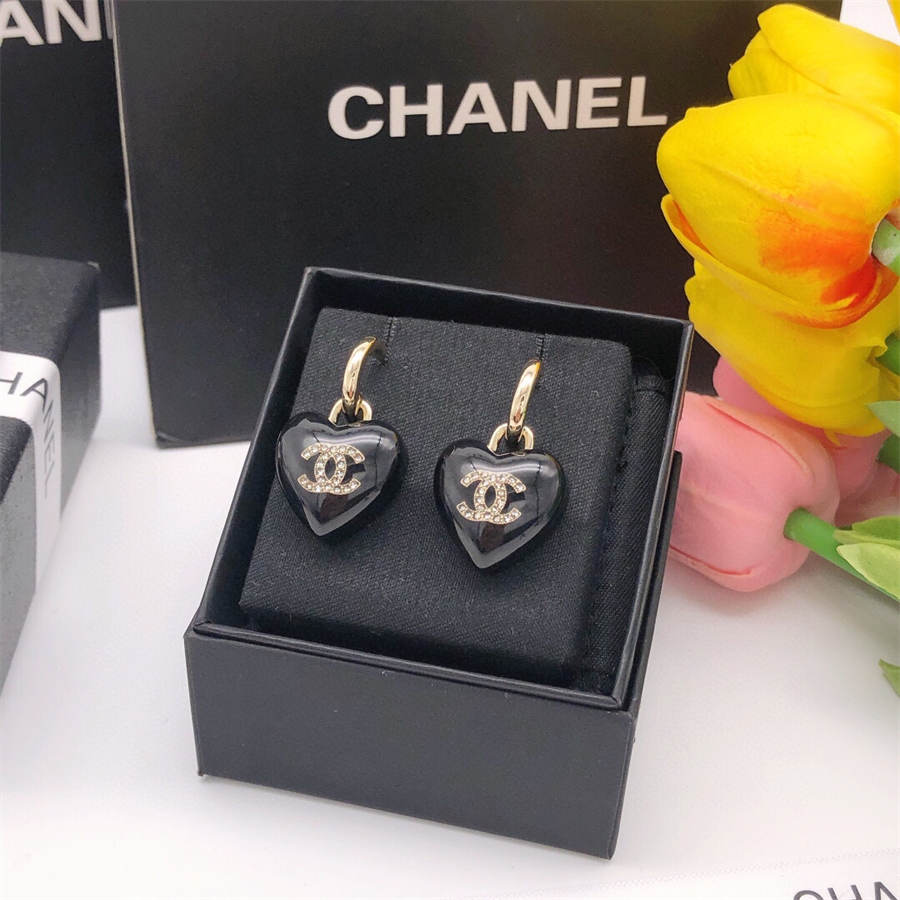Chanel double C pearl rhinestone obsidian dangle earrings