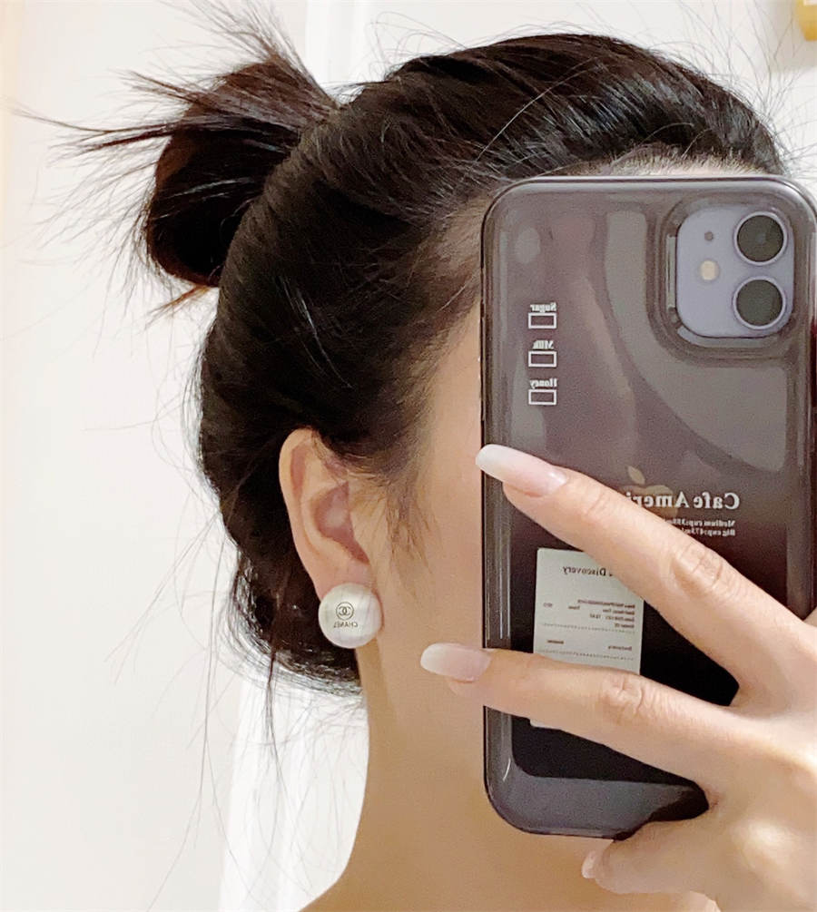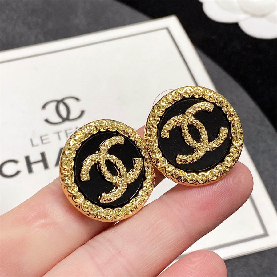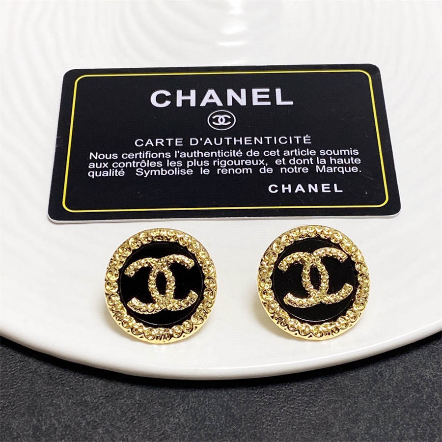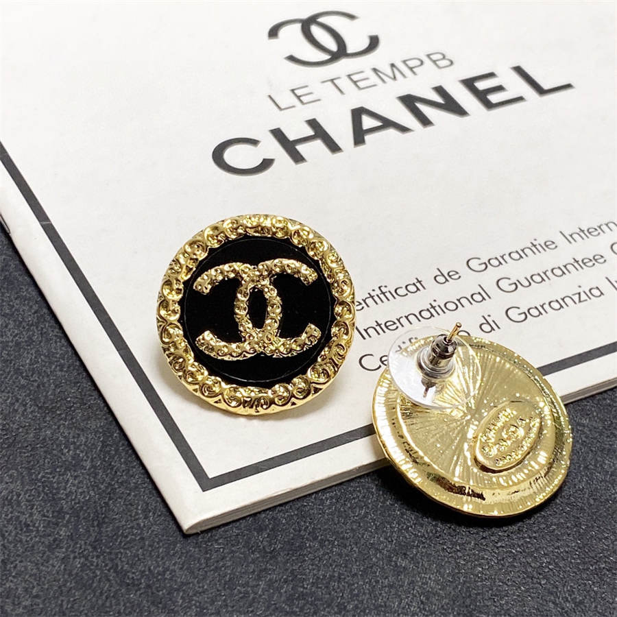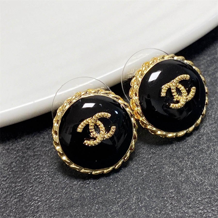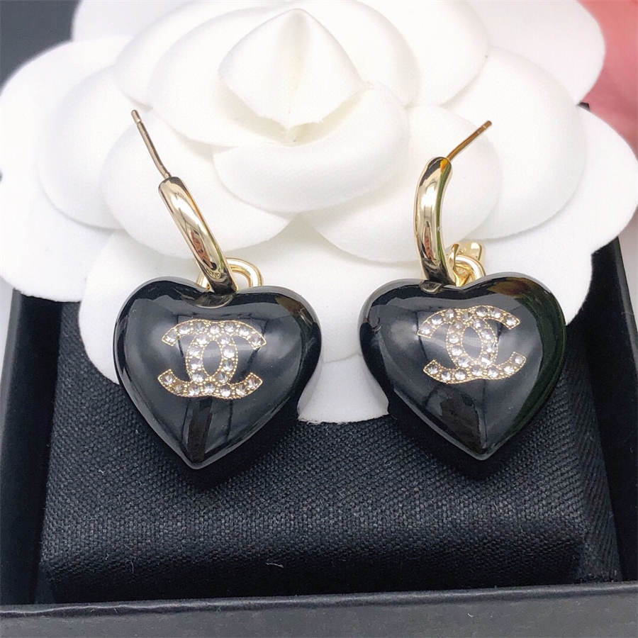 Chanel double C pearl rhinestone obsidian dangle earrings
