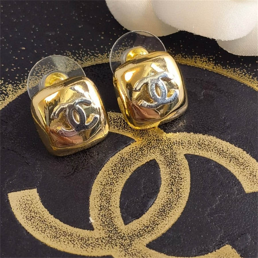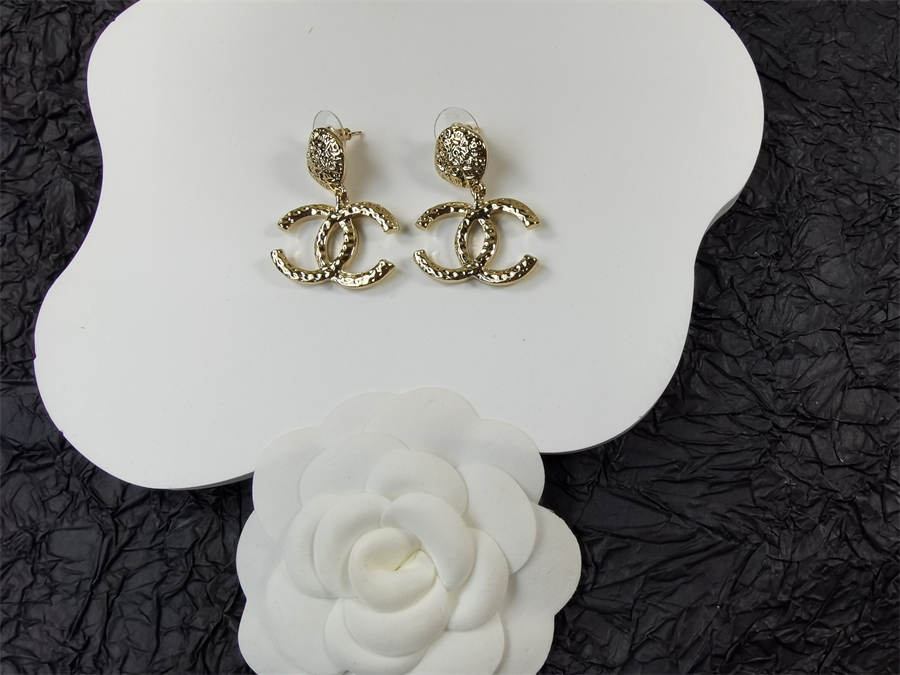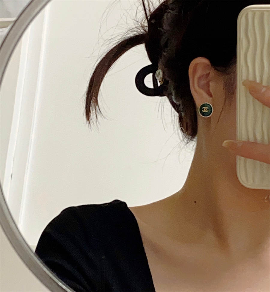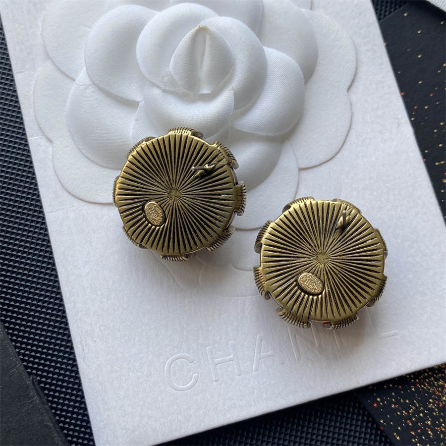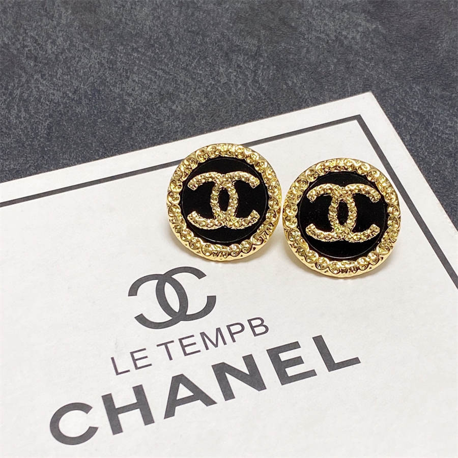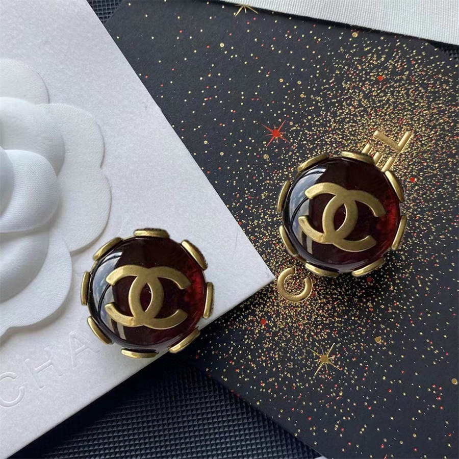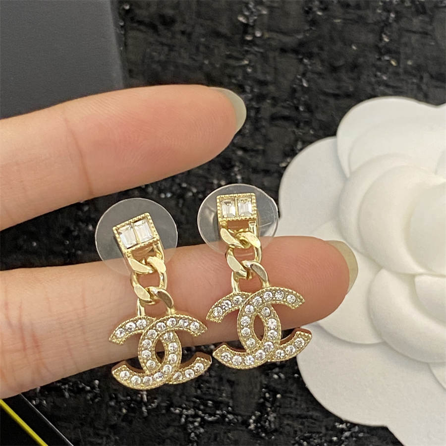 Chanel double C pearl rhinestone obsidian dangle earrings