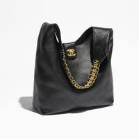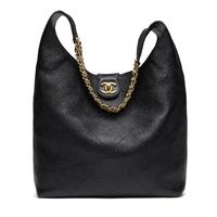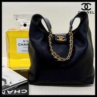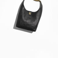 • CHANEL シャイニーラムスキン ラージ ホーボー バッグ ブラック