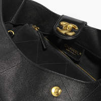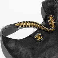CHANEL シャイニーラムスキン ラージ ホーボー バッグ ブラック
