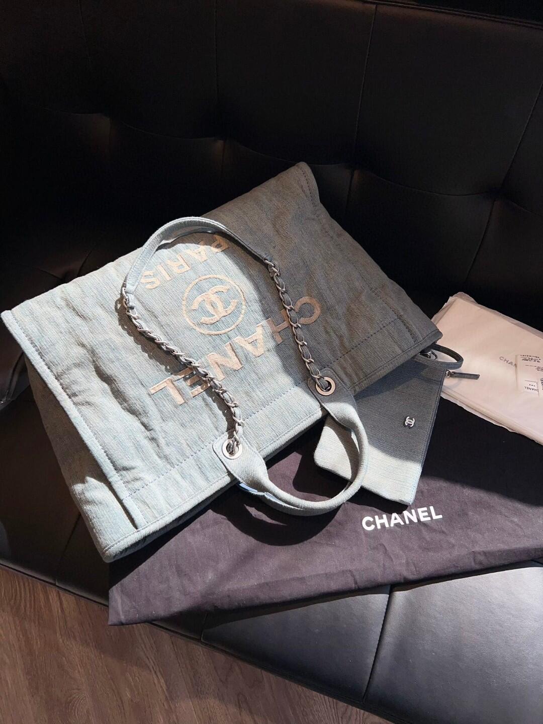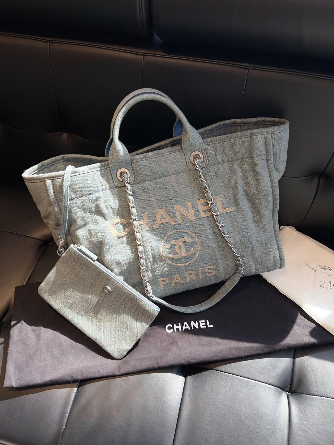 2023年春夏コレクションより登場した、CHANELの「23S」ミディアムサイズのショッピングバッグ。爽やかなライトブルーのウォッシュドデニムにホワイトのブランドロゴ刺繍が施され、季節感と高級感を兼ね備えた洗練されたデザイン。デイリーユースはもちろん、リゾートや週末のお出かけにも最適なバッグです。内部には収納力に優れたポケットも備え、機能性とスタイルを両立。軽量で持ちやすく、長時間の使用でも快適です。
