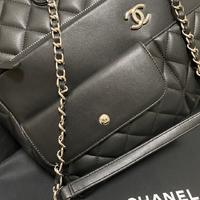 • Chanel Calfskin Quilted Ultra Pocket Shopping Tote Navy AS3928