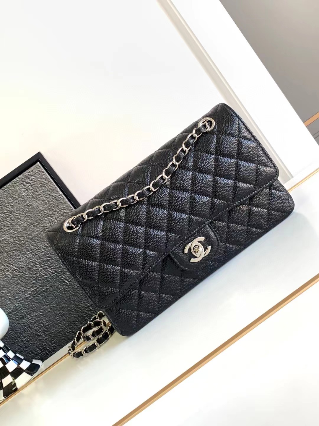 Chanel Flap Bag Carviar Leather Black Medium 1112