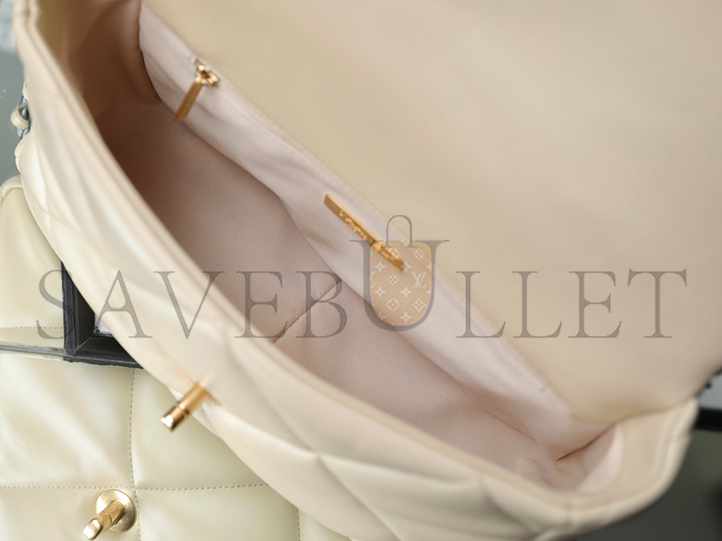 • CHANEL MASTER GOATSKIN QUILTED MEDIUM CHANEL 19 FLAP BEIGE (26*16*9cm)